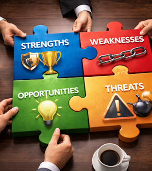 Pontos fortes, pontos de melhoria, vantagens e desvantagens em relação à concorrência, áreas de atuação, competências, limitações, e diversos outros pontos que compõe a complexa e rica imagem que o mercado forma de cada empresa